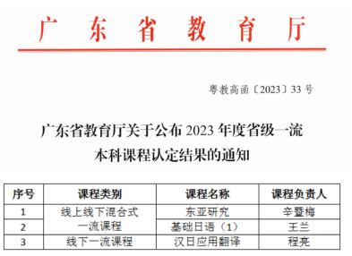 近日,广东省教育厅公布《广东省教育厅关于公布2023年度省级一流本科课程认定结果的通知》(粤教高函〔2023〕33号),公司一流课程建设成效实现新突破,共有3门课程入选广东省一流本科课程。其中,省级线上线下混合式一流课程2门,线下一流课程1门。近3年来,公司累计获得省级一流课程6门。