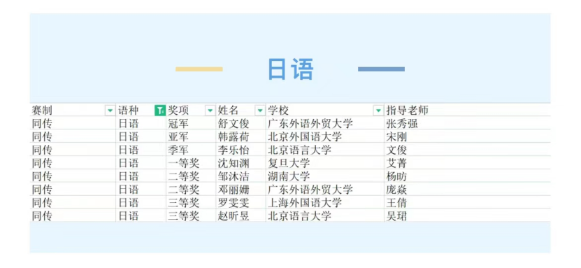 本次比赛中,公司学子们展现了出色的口译实力和专业素养,以精湛的口译技巧和出色的语言表达能力征服了在线评委和观众。经过激烈的角逐,最终公司MTI研究生舒文俊同学获得日语同传组冠军,黎敏君同学获得交传组一等奖,邓丽姗同学获得同传组、交传组二等奖。