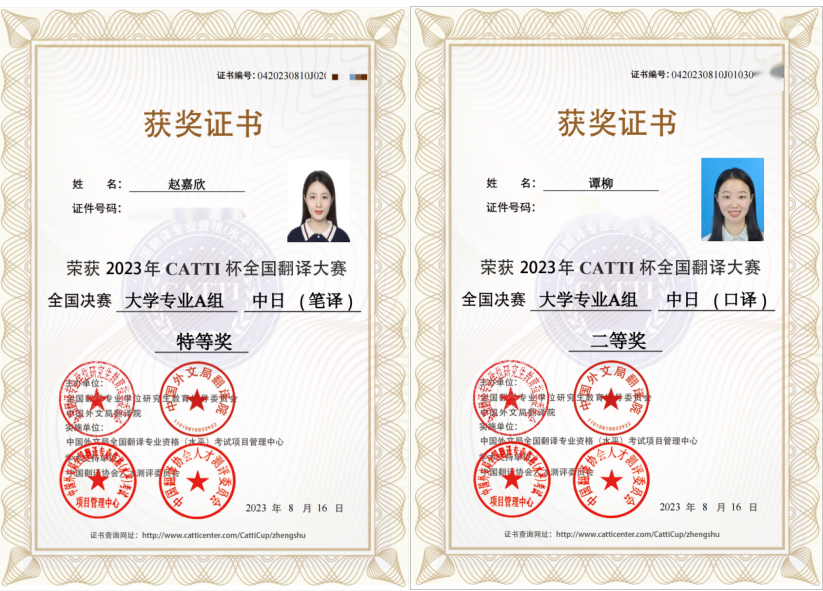 2023年7月29-30日,2023年“CATTI杯”全国翻译大赛决赛顺利举行,公司太阳城学子在全国决赛中获得优异成绩。其中,2022级日语语言文学硕士研究生赵嘉欣获得全国决赛大学专业 A 组中日(笔译)特等奖,2022级日语翻译硕士研究生谭柳获得全国决赛大学专业A组中日(口译)二等奖。