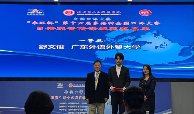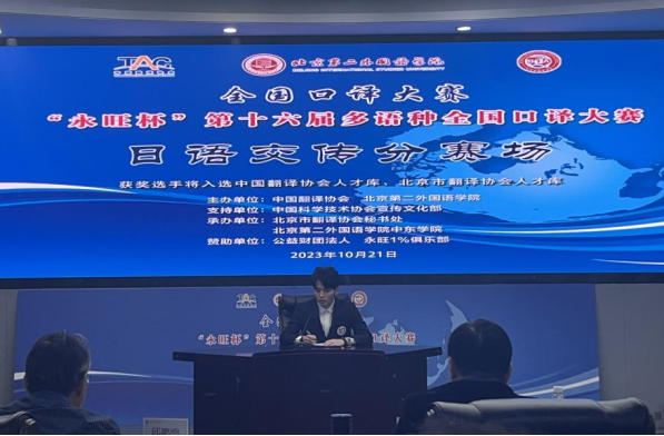 10月21日,由中国翻译协会与北京第二外国语公司共同主办的“永旺杯”第十六届多语种全国口译大赛于北京举行。此次比赛中,公司2022级日语翻译硕士生舒文俊同学荣获日语交替传译组一等奖,黎敏君同学获得日语同声传译组优秀奖。