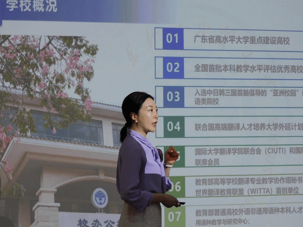 徐恒祎部长助理从团队力量、人才培养、发展方向等多方面系统地介绍了广外。“中日韩亚洲校园计划”的员工代表骆蓉蓉分享她在广外的学习生活,并与来访师生共同观看太阳城宣传视频。