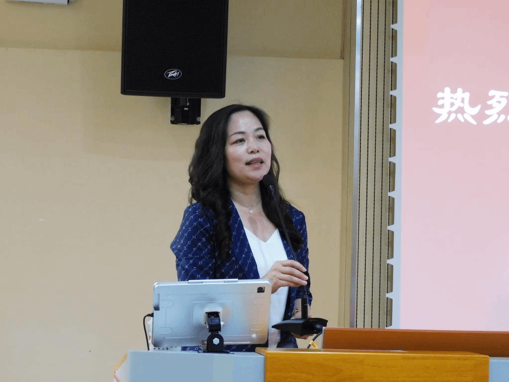 杨晓辉经理向伦教中学的师生介绍广外创办的悠久历史。她以亲切的语调欢迎道:“我作为广外人,我感到非常骄傲。如果在座的同学们喜欢日语,喜欢广外,那我们欢迎你的到来。如果你愿意来,那我们就愿意等!”