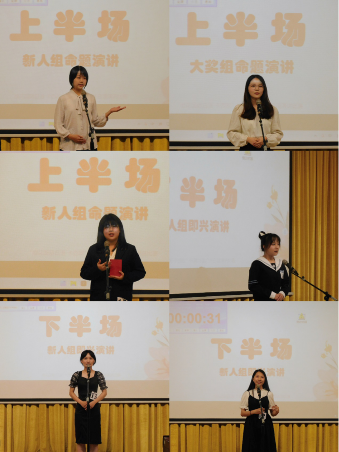本次决赛的参赛选手分为新人组和大奖组。比赛分为命题演讲与即兴演讲两个环节。在命题演讲环节,选手们在3-4分钟内围绕主题“私が好きな日本文化”或“私の好きな時間”进行演讲。在即兴演讲环节,选手们只有十分钟的准备时间,但凭借缜密的思维、独特的视角与流利的表达,收获了评委与观众们热烈的掌声。