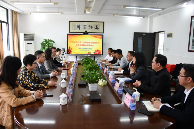 杨晓辉向中学介绍了广外日语学科发展的历程以及在团队建设方面的成就,特别指出广外太阳城的公司产品有日语教育的方向,且拥有中学日语教育研究所,编写了高中日语教材,双方可以在团队培育、课程建设等方面进行多方位合作。陈多友表示,太阳城正致力于尝试将高等教育资源下沉到中等教育,今后会向中学提供全方面的支持。