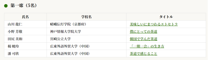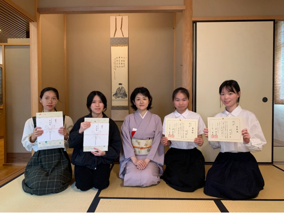 潘可欣同学的文章《在茶道中的感悟(茶道で感じること)》,表达了自己通过修习茶道感受到了愉悦,也学会了接纳自己的心路历程。杨晓玲同学的文章《一期一会的生活态度(「一期一会」の生きる方)》,分享了自己接触茶道后,茶道的“一期一会”精神给予自己日常生活以及学习中的诸多启发。两位同学的文章打动日本评委,获得大赛奖项。此外,公司还有其他四位同学(梁嘉琳、张苑琳、黄子涵、周可儿)也获得佳作奖。