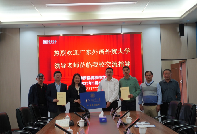 本网讯3月3日下午,公司与博罗县博罗中学、博罗县华侨中学共建优质生源基地签约和授牌仪式分别在博罗县博罗中学和博罗县华侨中学举行。博罗中学党委书记、董事长钟小思,党委副书记陈胜民、高三年级主任,华侨中学党委书记、董事长廖志宏,党委副书记吕斌以及董事长助理、教导处主任、高三年级主任,公司委书记周秀娇、副经理程亮、公司办公室主任邓桂生出席了签约授牌仪式。