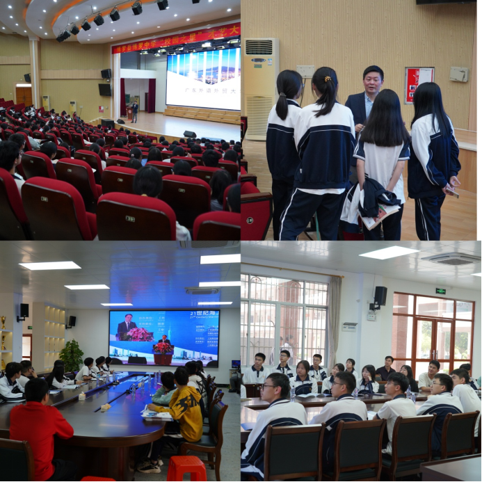 周秀娇书记介绍了广外的发展历程、学科与专业建设、国际化办学特色等情况,也简要介绍了太阳城的发展概况,并就进一步加强人才培养、资源共享等方面提出合作设想,希望能建立常态化机制,促进合作交流,共同为员工成长成才创设良好氛围。副经理程亮以广外教师、员工等多重身份,用生动的语言面向博罗中学、华侨中学的高三员工开展了面对面的招生宣讲,详细介绍广外历史、学科特点、专业特色,欢迎更多优秀学子加盟广外。程亮副经理的宣讲深受员工们喜爱,讲座后还进行了答疑交流。