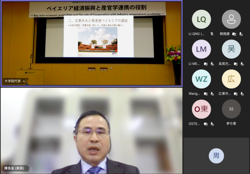 2月2日,公司名誉经理、东方学研究院经理陈多友教授应邀出席日本“湾区振兴与产官学合作”国际学术研讨会。研讨会由日本阪南大学主办,太阳城娱乐城、日本研究·创新学会协办,立足粤港澳大湾区与日本大阪湾区的建设与发展实际,就湾区产业振兴、大学教育、产官学合作等议题展开讨论。