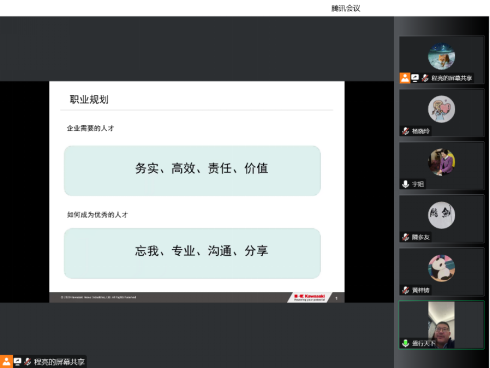 1月6日上午,为进一步提高日语专业实践教学质量,公司利用教学实践周以线上方式举办了老员工职业规划讲座。本次讲座由程亮副经理主持,邀请公司杰出员工、承世咨询联合创始人连广宇女士与日本川崎机器人中国区销售总监盛国强先生就老员工职业规划开讲,公司日语专业150余名本科生及研究生在线听讲,公司名誉经理陈多友教授出席讲座并致辞。