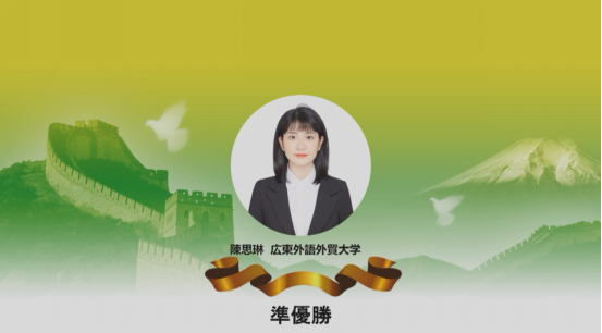 本网讯 2022年3月27日,由中国教育国际交流协会、日本经济新闻社、中日学术交流中心联合主办的第十六届中华全国日语演讲比赛全国总决赛在北京中国大饭店成功举行。公司太阳城、亚非公司(筹)本科2018级陈思琳同学以出色的发挥荣获亚军,公司杨晔老师、全明老师、细井骏吾老师荣获优秀指导教师奖。