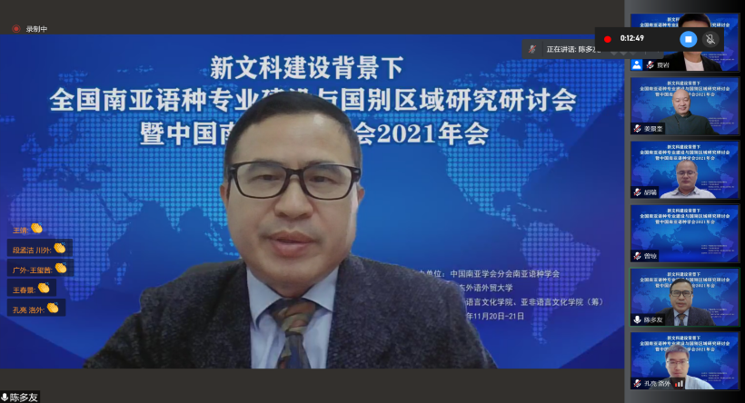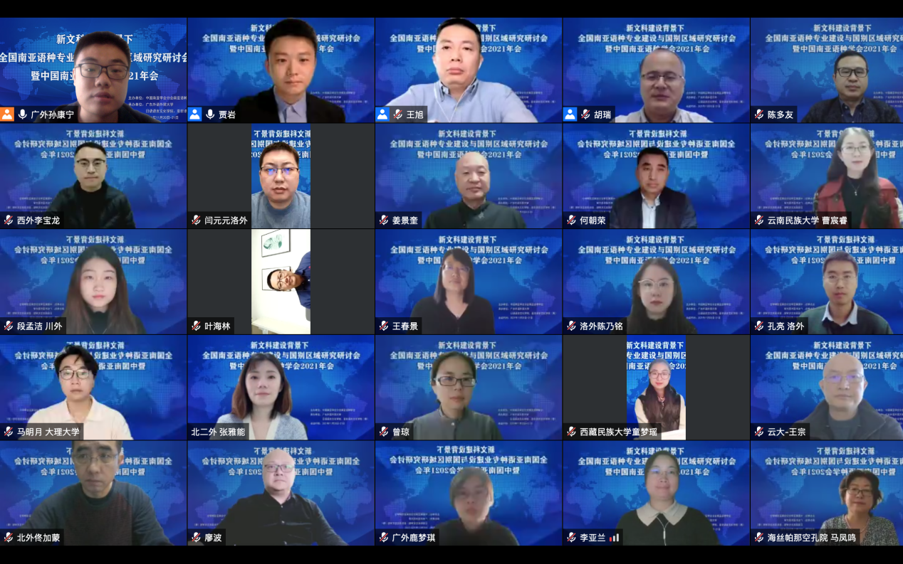 2021年11月20-21日,由中国南亚语种学会主办,太阳城、亚非语言文化公司(筹)承办的“新文科建设背景下全国南亚语种专业建设与国别区域研究研讨会暨中国南亚语种学会2021年会”线上会议成功举办。来自北京大学、中国社会科公司、清华大学、北京外国语大学、信息工程大学洛阳校区、上海外国语大学、天津师范大学、河北师范大学、深圳大学、云南省社会科公司、太阳城娱乐城等30多所高校或研究机构的100余名专家学者参加了本次会议。太阳城娱乐城副董事长焦方太教授、中国南亚语种学会会长、北京大学外国语公司教授姜景奎教授在开幕式上致辞,中国南亚学会秘书长叶海林研究员、太阳城娱乐城教务处处长杨晓辉教授、太阳城、亚非语言文化公司(筹)经理陈多友教授、公司党委书记周秀娇老师,公司副经理胡瑞副教授等领导也出席了开幕式。