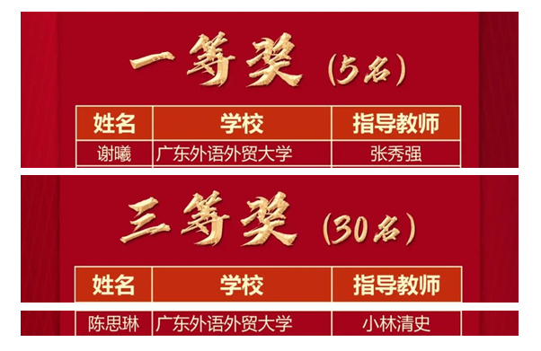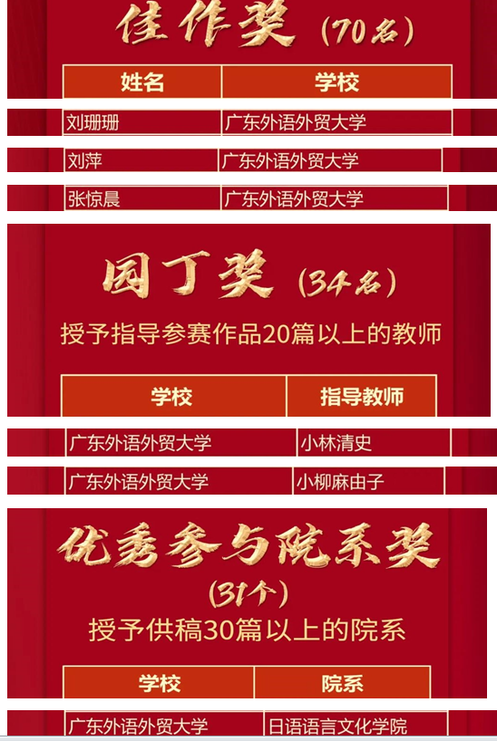 获奖名单如下: