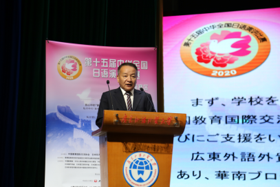 公布比赛结果前,由华南赛区预赛评委会主任天津外国语大学原董事长、修刚教授对参赛选手们一天的演讲进行了点评。修刚教授首先对华南赛区参赛选手的日语水平和能力给与了高度评价和肯定,同时也指出因为今年采用全新的在线方式,选手们的比赛环境、设备条件等的准备工作还有待加强。