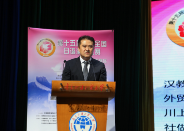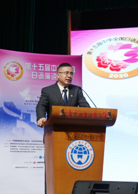 中国教育国际交流协会副秘书长沈雪松女士代表大赛组委会,日本经济新闻社广州支局支局长川上尚志先生,中日学术交流中心唐亚明教授代表大赛日本主办方分别致辞。