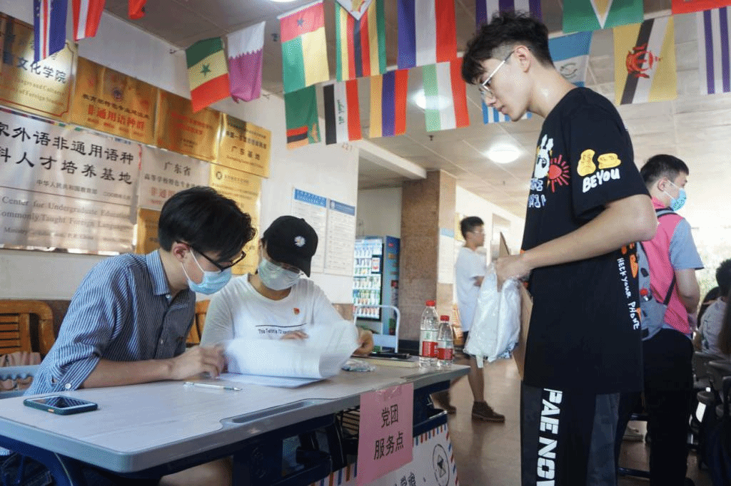 早上八时,新生们在公司门口接受体温检测及健康“绿码”检查后进入校园。公司师生志愿者全程陪同新生办理报到手续,一起搬运行李,办理入住手续等。志愿者们全身心投入,为全体新生提供了优质的服务。