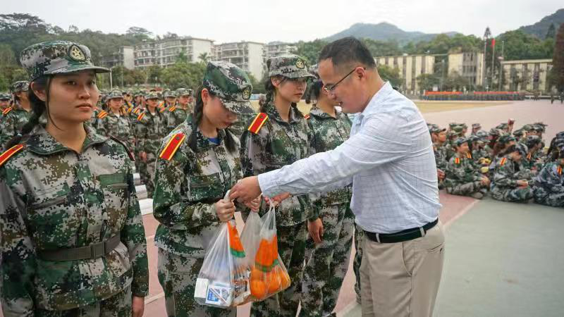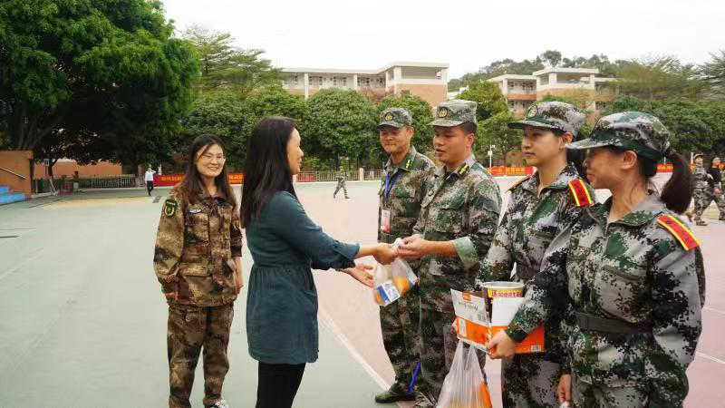慰问期间,公司领导老师表达了对同学们的关心,赞扬了同学们在军训期间所展现出的坚韧不拔、艰苦训练的优秀品质,对公司方阵在期中考核中取得第一名的好成绩表示祝贺,并希望同学们再接再厉,在军训汇演上展现公司学子风采,圆满完成本次军训任务。