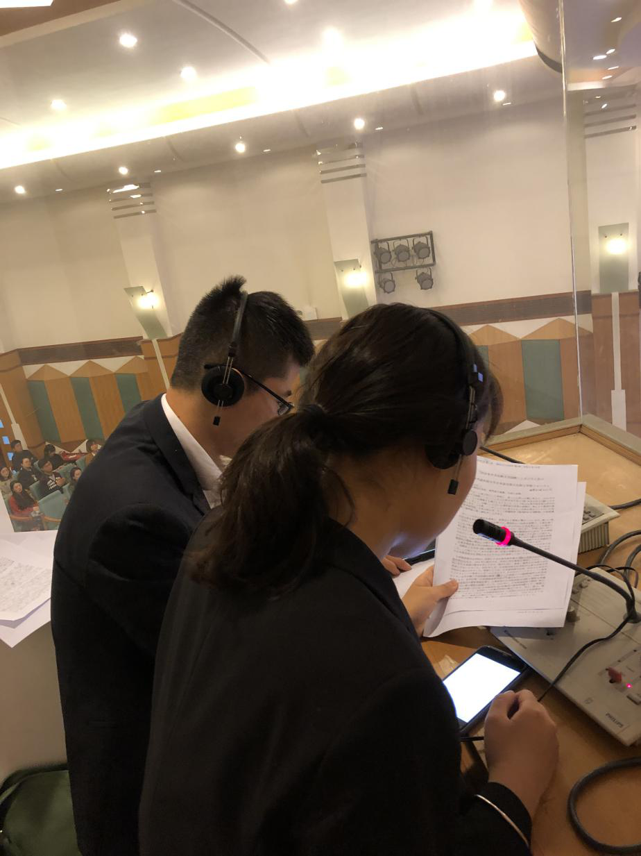 张帅帅同学(左)、颜瑞岐同学(右)在同传工作中
