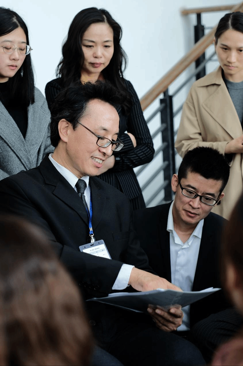 同学们原本是把这次任务当成一场“练兵”,但令每个参与同声传译工作的同学惊喜的是,大连大学宋协毅教授全程仔细听取了员工们的口译,并在大会期间抽空与员工面对面,热心给予专业性的指导。宋协毅教授先是高度评价了同学们的表现,之后根据详细的笔记内容,仔细指出每一位同学存在的问题,为同学们指点迷津。