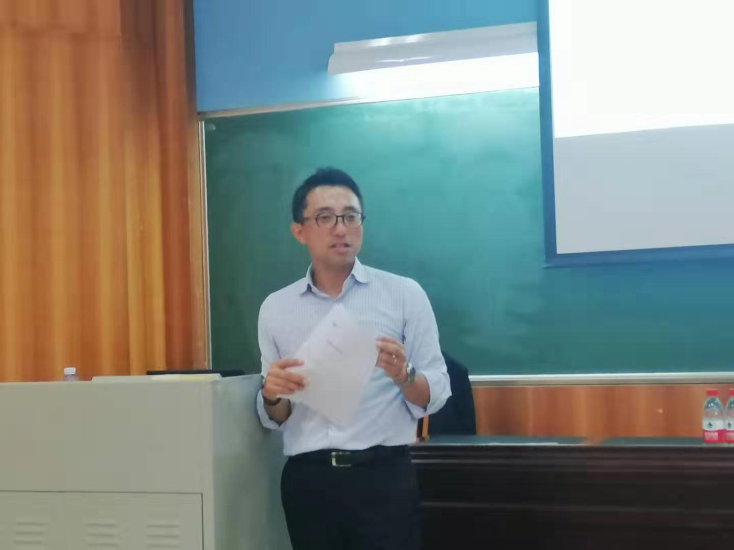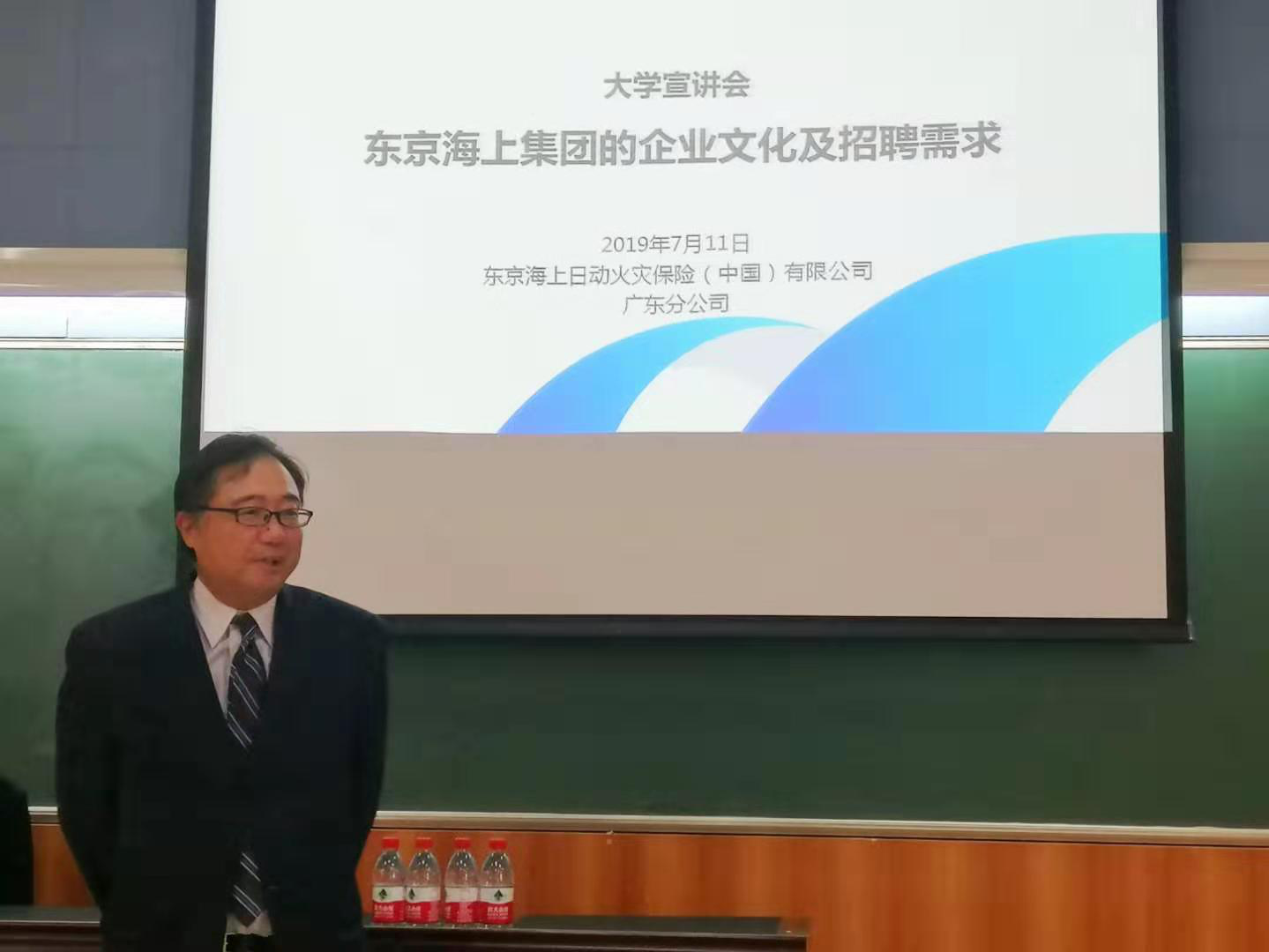 本网讯 7月11日下午,日企经理校园行巡回讲演于七教107顺利开展。出席本次宣讲会的嘉宾有:广州日本领事馆首席领事大圣寺利幸先生、领事井上爱子小姐、王小丽小姐;东京海上集团(广东)总经理石原徹弥先生,副总经理刘晓玲小姐,主管胡莹君小姐;广州日本工商会代表,普华永道(PWC)中天会计师事务所(广州)佐佐木博基先生、何思慧小姐;太阳城副经理杨晓辉教授、副经理张秀强教授、经理助理兼系主任张志刚副教授。本次宣讲会由程亮副教授主持。