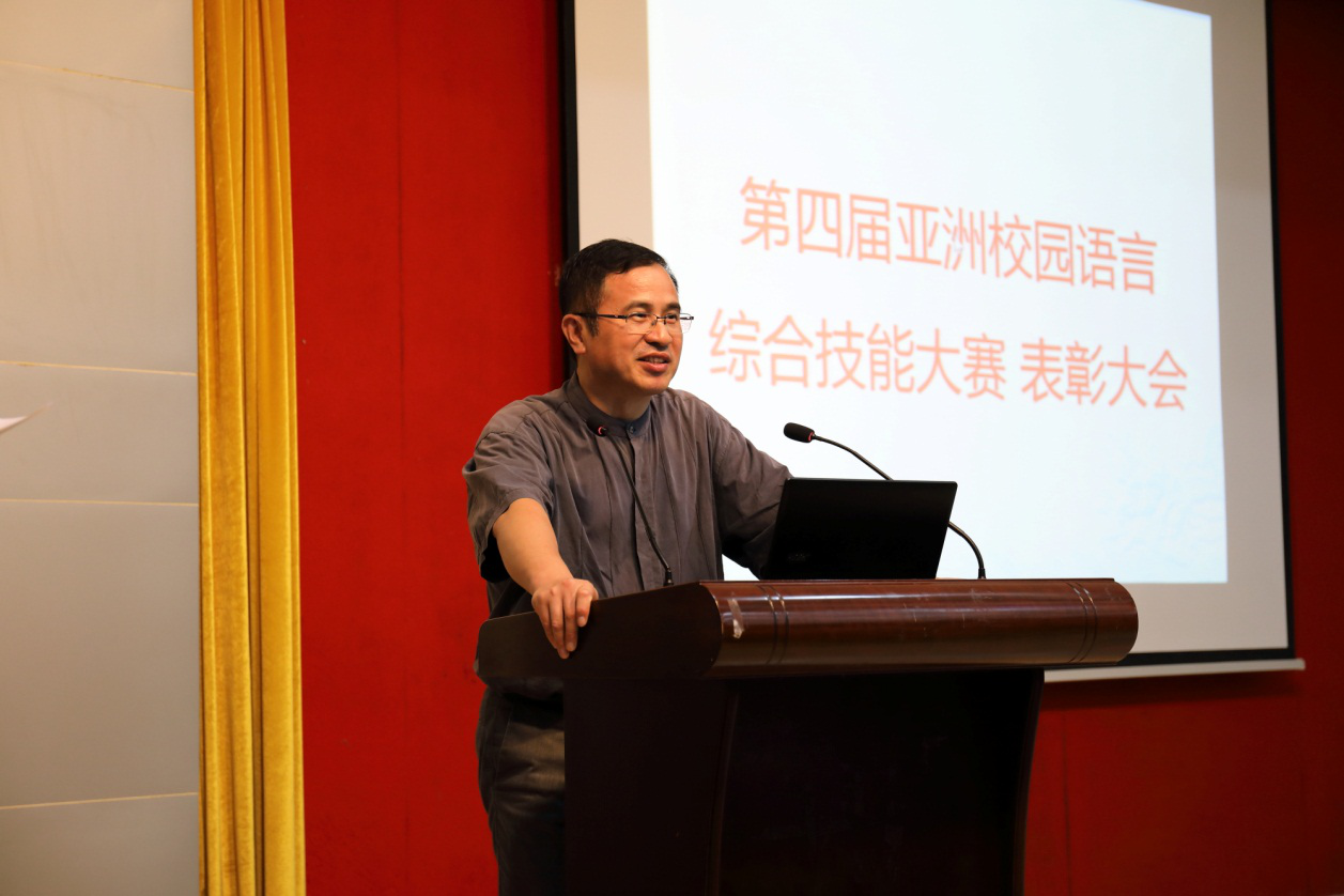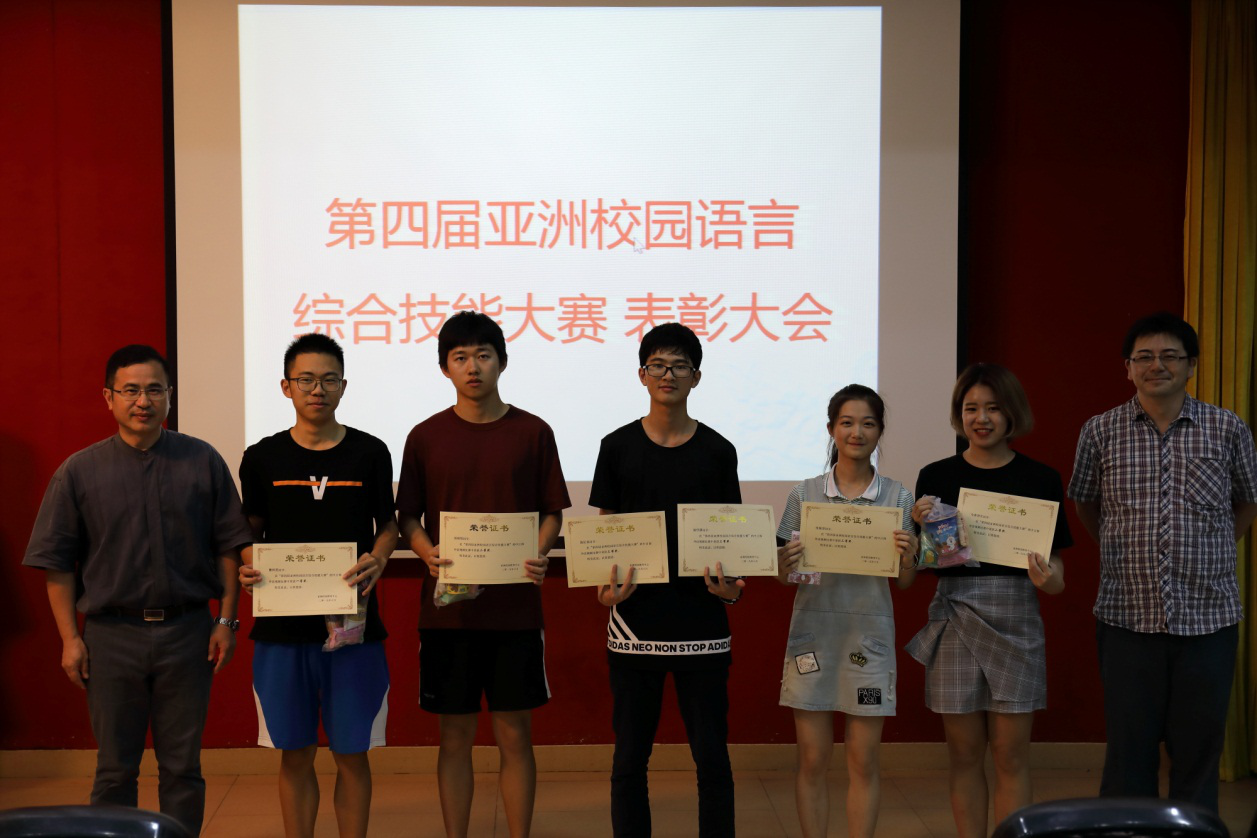 6月20日下午,亚洲校园教育中心在七教水上报告厅举行第四届亚洲校园语言综合技能大赛表彰大会。出席本次活动的有太阳城、亚非公司(筹)经理陈多友教授、副经理兼亚洲校园教育中心主任杨晓辉教授、亚洲校园教育中心的部分专任教师、外教,以及中日韩亚洲校园的员工们。