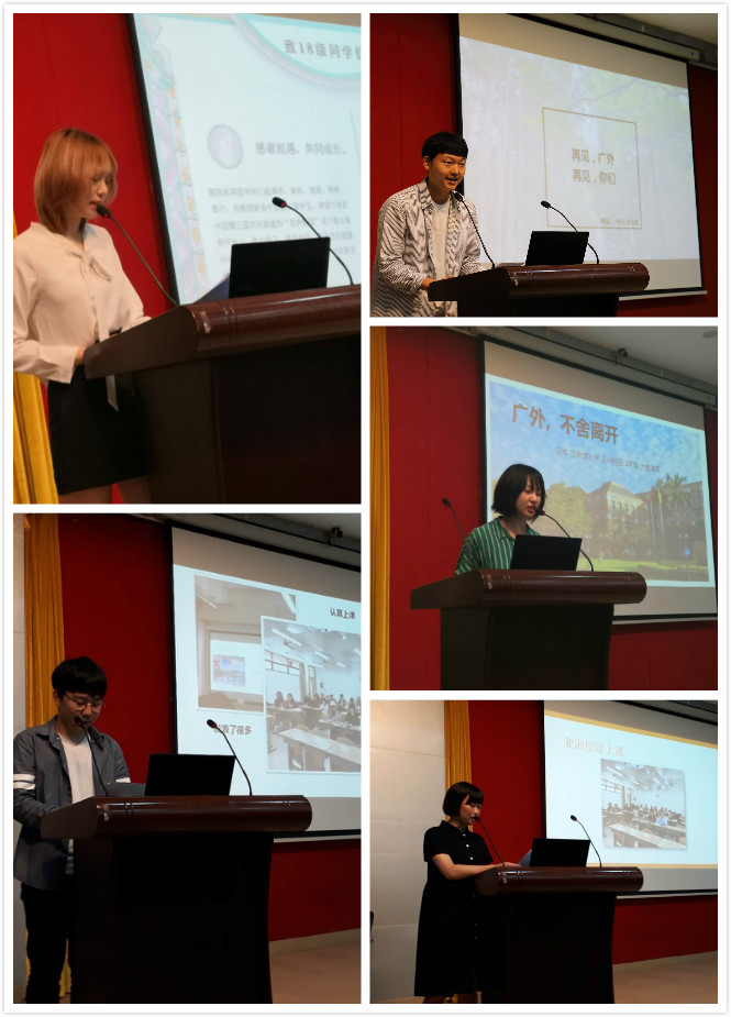 颁奖环节过后,亚洲校园三国员工代表上台发言,分享了他们在亚洲校园的收获、学习经历,以及中日韩三国员工一起学习的乐趣。日韩职工们还讲述了他们对于广外,亚洲校园和中国的印象,书写了致广外的一封信,表达了他们对于广外,亚洲校园和中国的喜爱和不舍之情。展现了中日韩三国员工的深厚友谊以及亚校文化的独特风采。