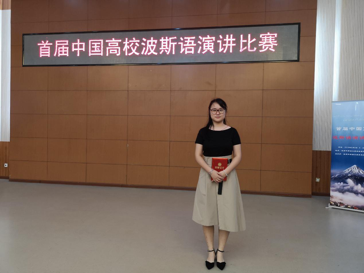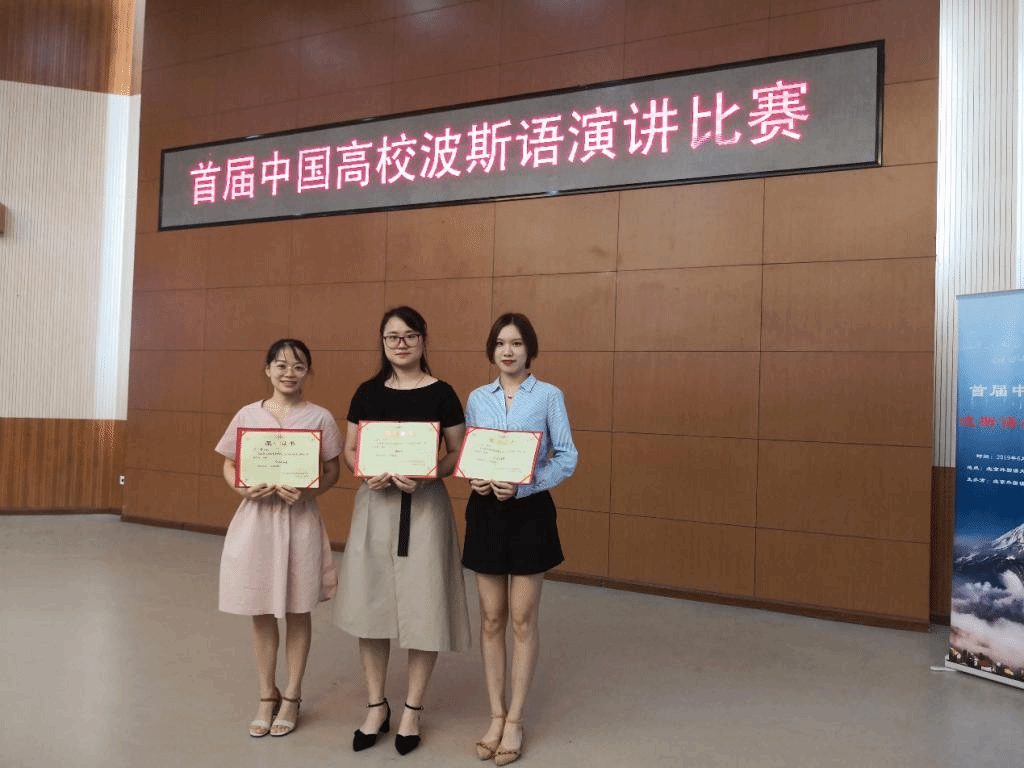 2019年6月8日上午9时,首届中国高校波斯语演讲比赛于北京外国语大学阿语楼进行,经过激烈角逐,公司2017级波斯语学子胡艺慧荣获个人优胜奖,欧子麟、陈婕获得个人风采奖。