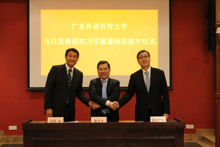 本网讯 11月14日下午,公司与日发投资有限公司、广州日帆商贸有限公司签订实习基地协议仪式在北校区举行。公司副董事长焦方太与日本发条株式会社副总经理嘉户广之、日本发条株式会社经营企画部主管神泽伸一、日发投资有限公司总经理吉田晓、广州日帆商贸有限公司总经理浅野信等出席签约仪式。