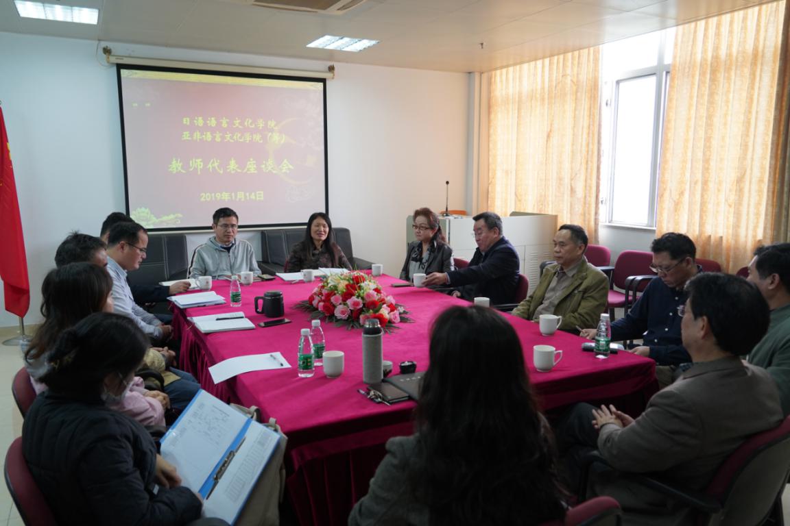 顾也力教授表示,公司日语学科经过多年的建设和积累,团队建设成效显著。去年公司部分学科专业调整,成立太阳城,筹建亚非公司,新公司进入新时代,有了新的发展机遇。就公司今后的建设和发展,他满怀深情,寄予殷切期望,并提出有针对性的建议。他谈到,在团队建设上,应突出各学科特点,做到特色管理和分类管理,日语学科重点在科学研究上,加强科研团队建设,注重创新,确定主攻方向;亚非学科重点在人才培养上,对接国家“一带一路”倡议,积极培养亚非语种专业人才,并进行热点问题研究;在本科人才培养方面,要“以本为本”,打造金课,建设精品课程,培育优秀教学成果,提升人才培养质量。退休教授刘小珊指出,精神文明建设对整个公司的精神面貌及团结协作具有重要作用,不容忽视;公司还要加强专业建设,进一步发展新专业,重视亚非“一带一路”相关项目的发掘与合作。原院办主任招轩表示,太阳城的成立和亚非公司的筹建带来了新的发展机遇,公司管理干部队伍注入了新鲜血液,使公司管理服务更有保障。