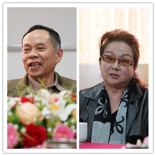 公司退休教师代表招轩(左)、刘小珊(右)发言