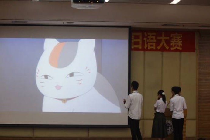 第二部分是动漫配音,每个班级各显神通,生动地给观众们演绎了各色动漫。总揽配音三个奖项的是日语1603班,他们的配音节目是“夏目友人帐”,其配音表演惟妙惟肖,特别是演绎ニャコ先生的冯舒朗(最佳男主角配音)和演绎多軌透的陈伶俐(最佳女主角配音)给观众们留下了深刻的印象。
