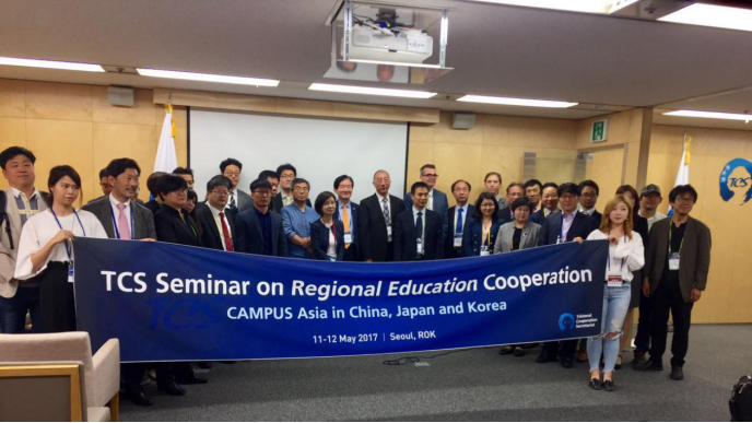 本网讯 在2016年1月30日举办的第一届教育部长会议上, 三国教育部长高度评价了亚洲校园项目, 并就三国应该继续实施并扩大亚洲校园项目达成共识。根据中日韩三国教育合作首尔宣言, 中日韩三国合作秘书处于2017年5月12日在韩国首尔四季酒店举办“中日韩三国高校亚洲校园合作研讨会”, 为三国负责亚洲校园项目的教授们和老师们提供一个交流和分享的平台。本次大会邀请三国大使馆教育参赞以及三国的40多位亚洲校园的项目负责人,公司东语公司亚洲校园教育中心副主任全优老师作为公司代表出席了本次论坛。