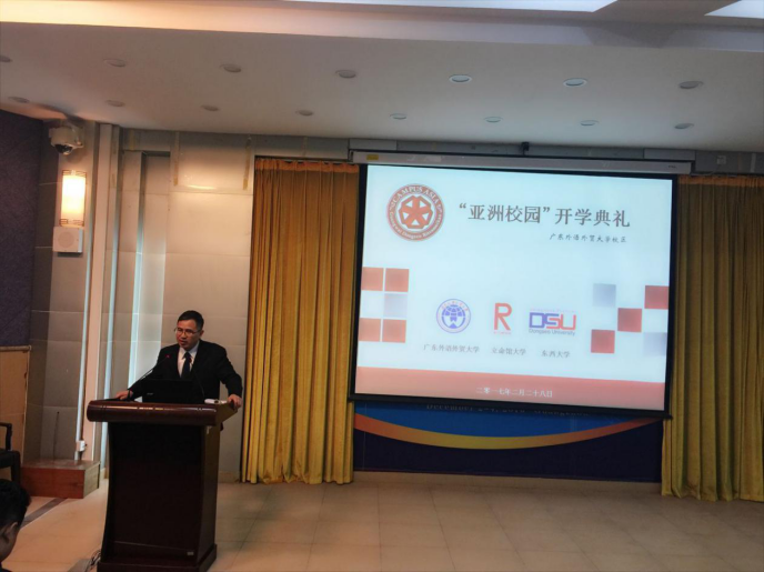 东方语言文化公司经理陈多友教授在开学典礼上致辞