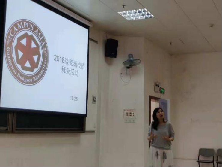 本网讯:2018年10月26日,公司2018级“亚洲校园”的首次班会在七教321举行,班会由班导师辛暨梅主持。此次班会旨在引导18级亚校新生对近期学习、生活进行归纳总结,帮助同学们更好地投入到下一阶段的学习生活中去。