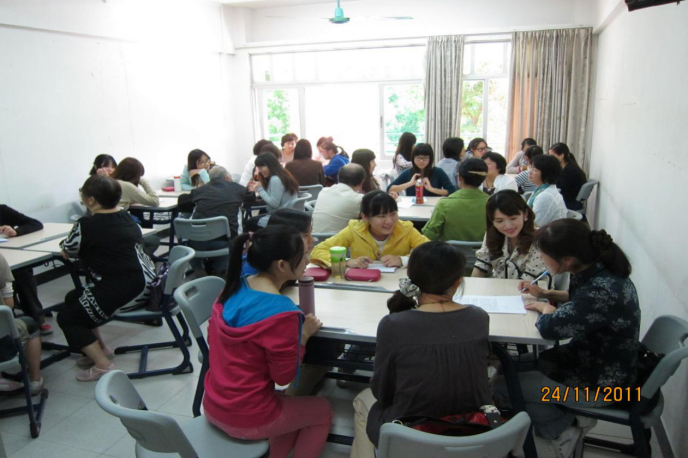 参加本次活动的员工大部分是日语系09、10级的同学,也有部分来自11级的员工。同学们见到妇人会的成员都纷纷拿出自己的作文,迫不及待地请妇人会成员检查修改,抓紧机会与妇人会成员交流学习日语的方法。妇人会成员仔细地检查作文,不时与其他成员或同学进行讨论交流,认真地为同学们修改作文。与此同时,同学们也认真聆听,吸取妇人会成员的建议。