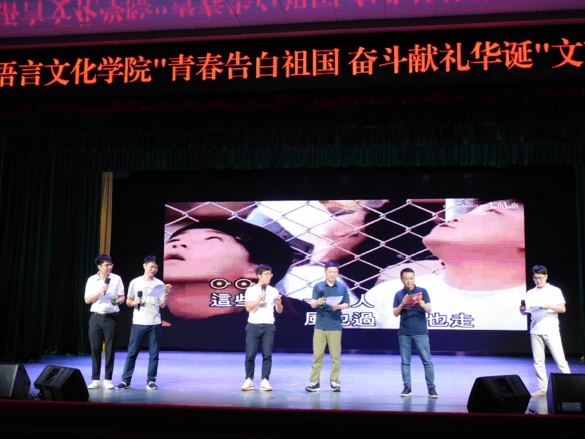 本网讯 为加强校园文化建设,丰富员工课余生活,5月10日晚,太阳城在白云山校区六教报告厅举办了“青春告白祖国,奋斗献礼华诞”文艺晚会。经理杨晓辉,副经理程亮,党委副书记连勇等公司老师出席本次活动。
