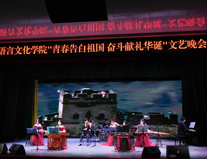 校器乐队为大家带来《我的祖国》器乐演奏,以优美的乐声拉开了晚会的序幕。在乐曲演奏中,各种中西乐器轮番上阵,完美融合,相得益彰。场内飘扬起一阵阵美妙的音乐声,诉说着莘莘学子对祖国的热爱。