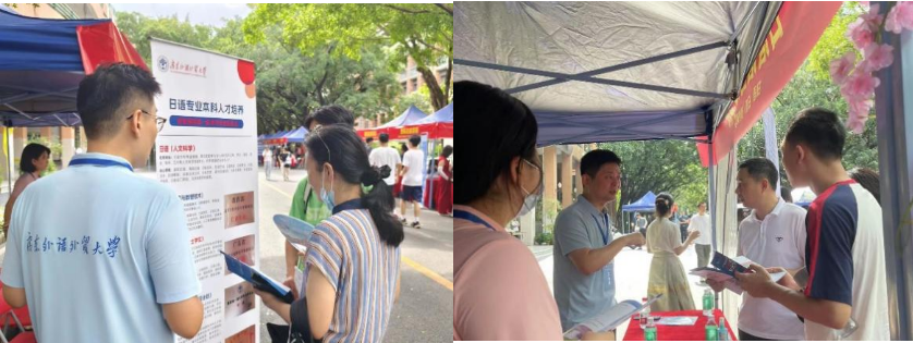 在公司专业以及招生政策咨询摊位上,公司教师详细介绍了院系特色、专业设置及未来发展等,特别是今年新设的“日语+国际经济与贸易”双学位专业。现场咨询人数众多,考生和家长对于双学位显示出浓厚的兴趣。