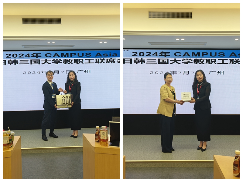 杨晓辉(右)向日韩代表(左)赠送纪念品