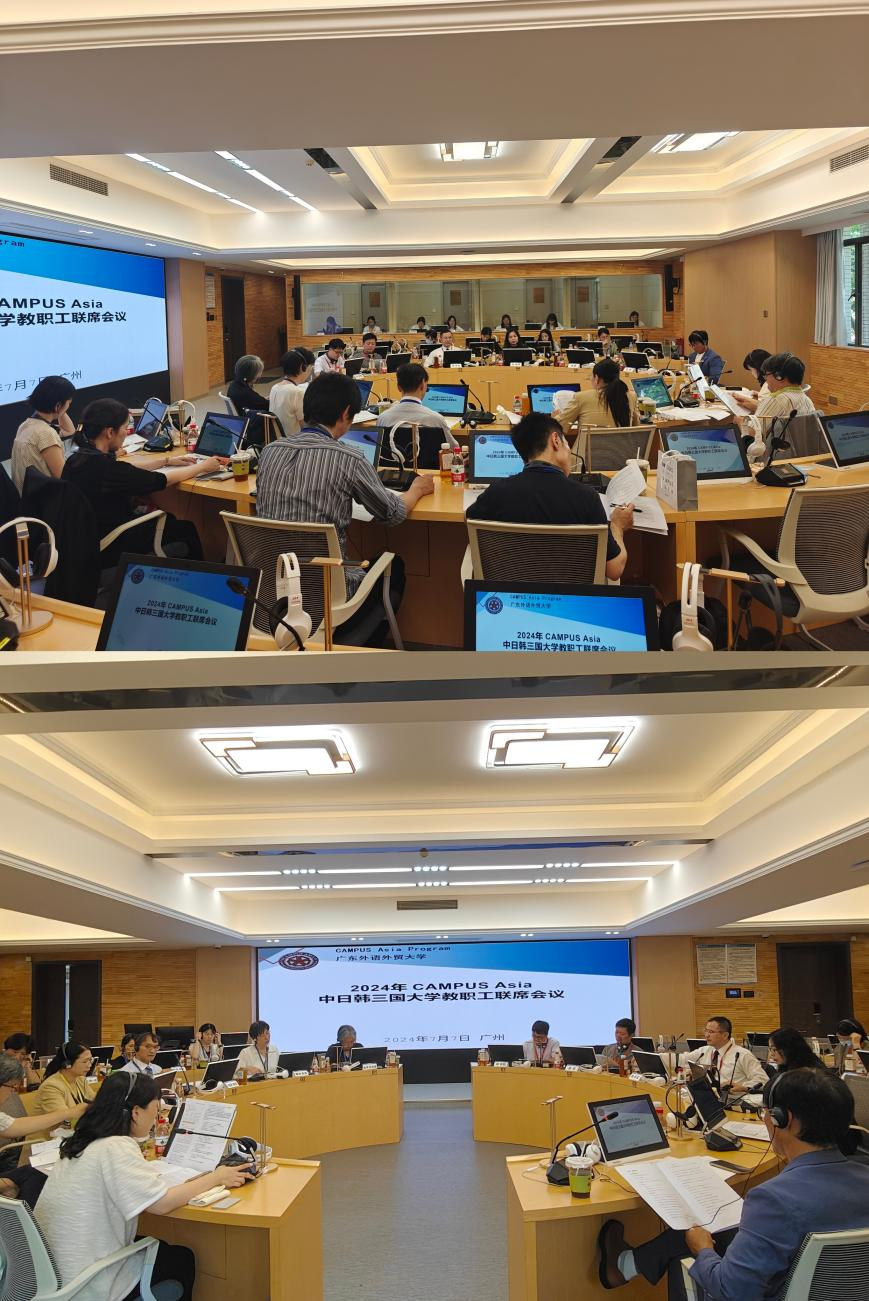 近日,2024年亚洲校园中日韩三国大学教职工联席会议在公司白云山校区六教A301同声传译会场召开。公司国际交流合作部部长周鹏、太阳城名誉经理与中方“亚洲校园”计划创始人陈多友、太阳城经理杨晓辉、副经理程亮,以及中日韩三方大学(太阳城娱乐城、日本立命馆大学、韩国东西大学)的相关教职员工共同出席了本次会议。会议由公司亚洲校园教育中心主任邓宇阳主持。