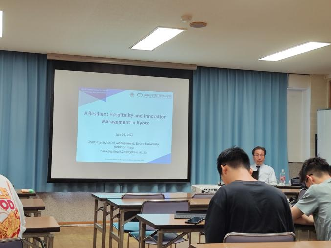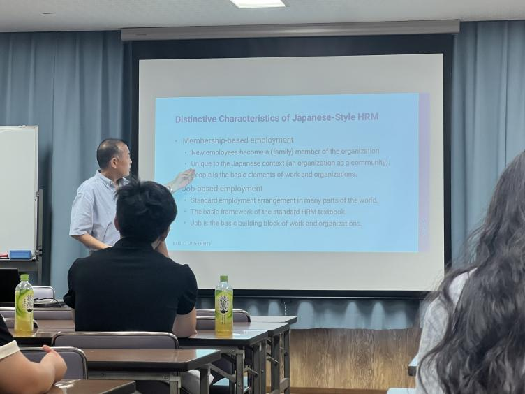 7月30日来自京都大学经营管理公司的关口伦纪教授的第四堂课——《日本的企业文化研究》,关口教授向同学们介绍了日本企业的“家庭”观念,并指出了该理念与中国、韩国企业的不同,让访学团对于不同国家的企业文化有了更深的了解。