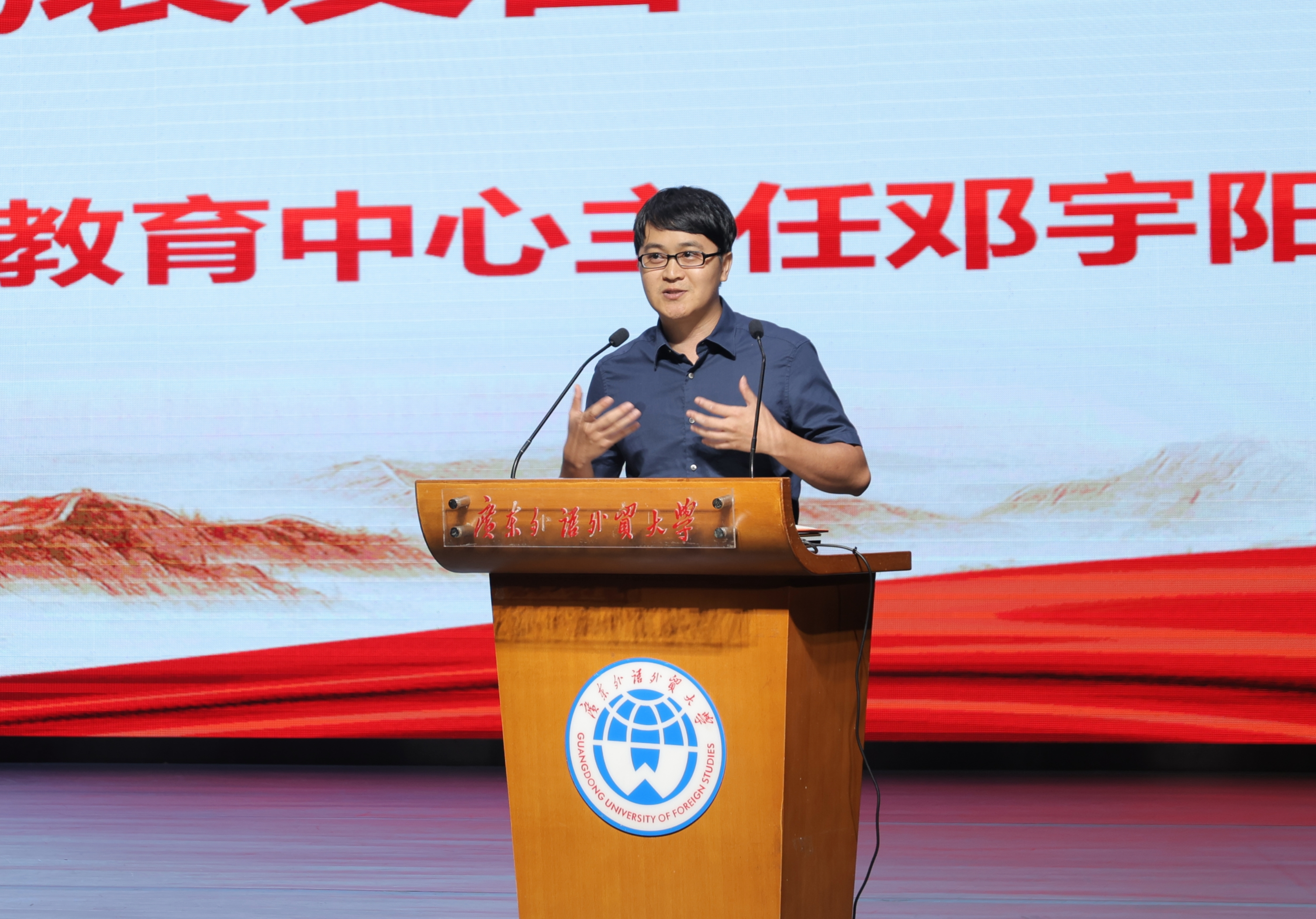 教师代表邓宇阳博士与新生畅谈求学经验,他鼓励同学们以热爱为引,在语言学习的洪流中逆风启航,寻找适合自己的、满怀热爱的人生道路。
