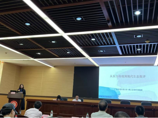 研讨会现场,海峡两岸专家学者围绕“生态美学与生态批评”“区域与生态文化研究”“跨学科与生态文学研究”“人类世与后人类批评”等内容作主题报告,公司杨晓辉教授应邀作了《从东方传统到生态批评》的大会主旨发言。