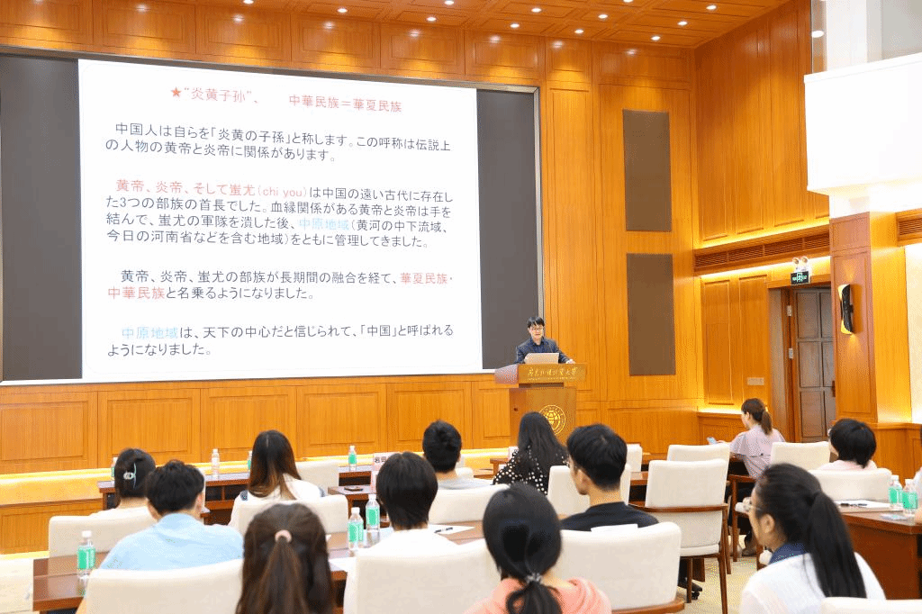 在讲座环节,邓宇阳以“中国的古代史、地理、风景”为题,为中日员工带来了一场妙趣横生的讲座。他通过丰富的图片资料以及生动的讲述,向中日员工展示了中国悠久的历史文化和壮丽的自然风光,引发了现场员工的浓厚兴趣。