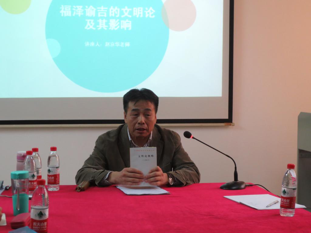 本网讯 1月7日下午,新年伊始,应本院丁国旗教授邀请,中国社会科公司文学研究所研究员赵京华教授莅临公司讲学。本次讲学,赵教授分别以“福泽谕吉的文明论及其影响”与“近代日本有关中国的知识生产——以橘朴为中心”为论题,展现了他渊博的知识,为本院日语系的员工带来了一场学术盛宴。