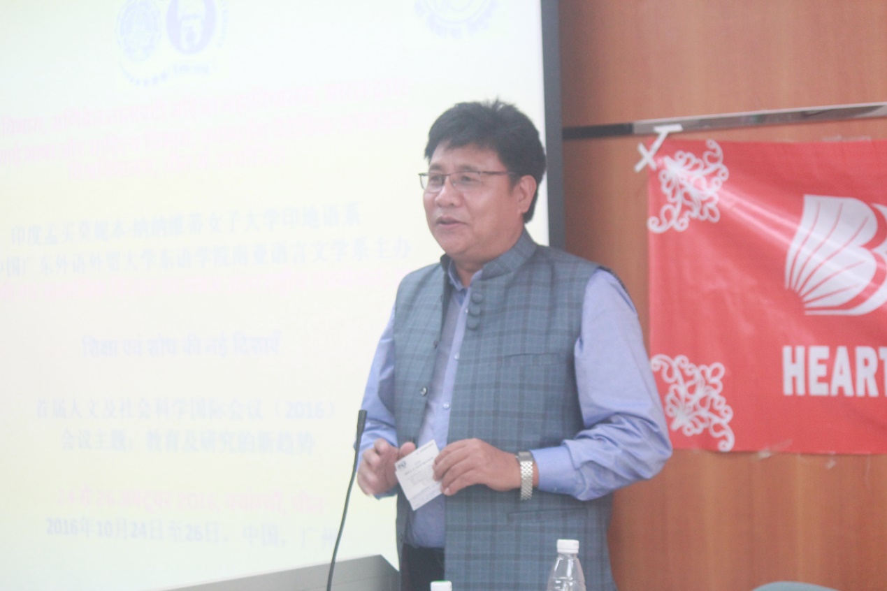 出席本次研讨会开幕式的有印度驻广州总领事馆总领事Mr.Sylas Thangal、东语公司副经理罗奕原、南亚语言文学系主任胡瑞以及来自印度的嘉宾,Prof.GP Sharma Anchoring主持了本次开幕式。