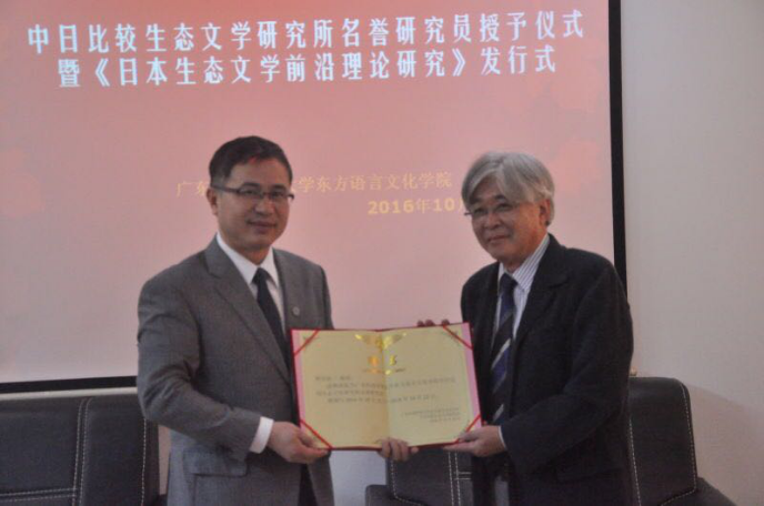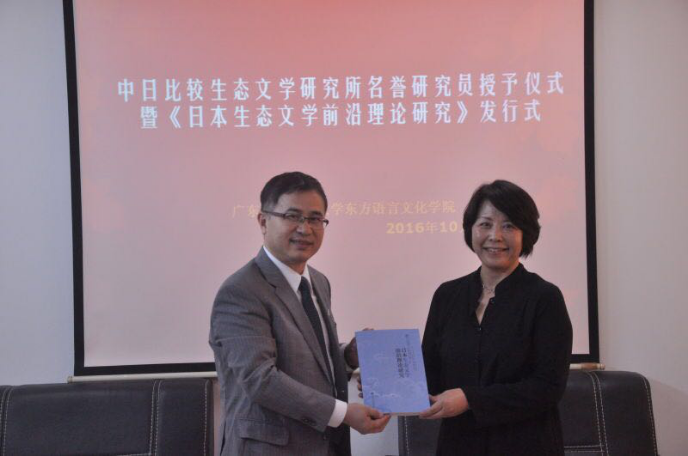 授予仪式之后,举行了《日本生态文学前沿理论研究》发行仪式。该书为中日双方合作的学术硕果之一,汇聚了野田研一教授、结城正美教授等日本知名生态文学研究专家的部分前沿研究成果。由野田研一教授作序,由太阳城娱乐城东方语言文化公司牵头的研究团队承担了翻译、评介和编写工作。结城正美教授代表日本文学环境学会对该书的出版表示热烈祝贺,对相关作者表示衷心感谢。并希望以此为契机,不断有日本生态文学研究著述在中国问世。