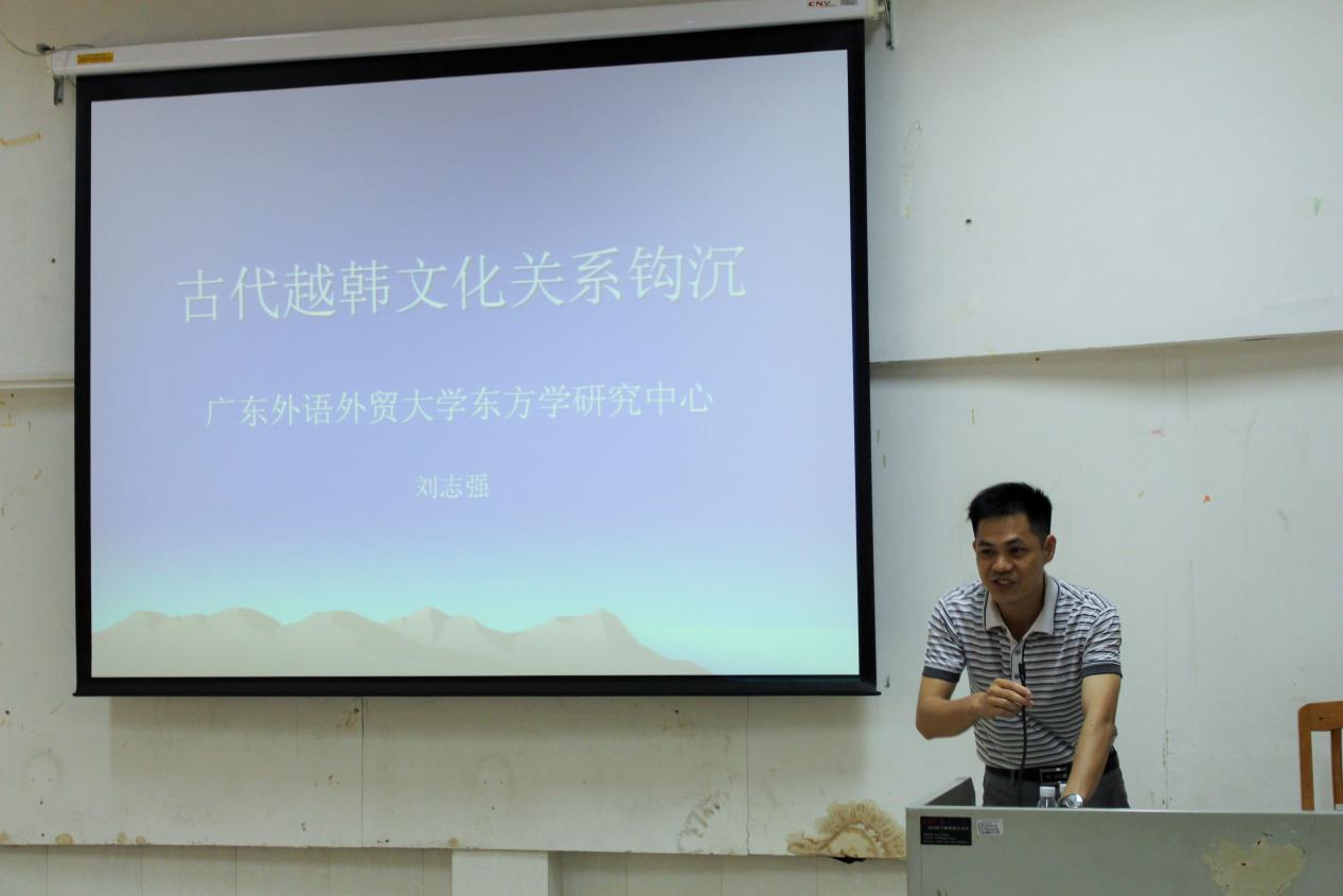 刘志强教授以《古代越韩文化关系钩沉》为题,以大量史实文献为证,将自安南姜公辅和新罗崔致远为代表的初接触开始,经历13世纪的李龙祥事迹、15-18世纪贡使之文墨之交、16-17世纪越朝之间的人员漂流事迹等漫长历史进程直至今日的越韩两国文化关系发展向我们娓娓道来。