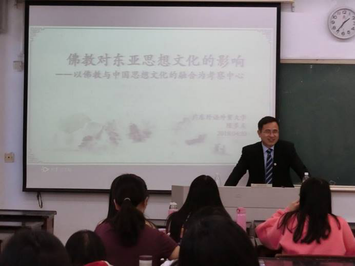 2018年4月20日,东方语言文化公司经理陈多友教授应苏州大学邀请,在苏州大学外国语公司进行了题为“佛教对东亚思想文化的影响”的专题讲座。外国语公司的师生参加了本次讲座。在演讲结束后的互动环节上,陈多友教授与在场师生进行了热烈的讨论,并对员工的提问进行了解答。