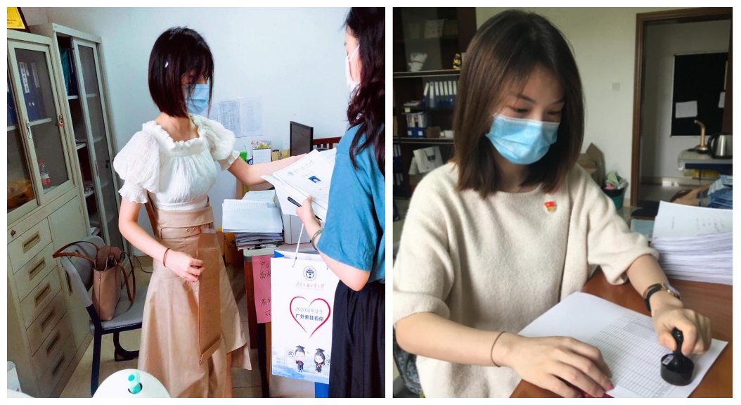 在听闻因疫情原因公司开展毕业生返校工作人手不足亟待支援时,公司日语语言文学研究生第一党支部胡晓萱和朱苗苗、日语语言文学研究生第二党支部的余浩荣和唐劲,这四位身在广东的员工党员毫不犹豫报名参加了党员志愿服务队。其中余浩荣同学家住东莞,天刚亮就出门去乘坐前往广州的动车,一路奔波,只为准时赶到公司做好毕业生返校各项准备工作。