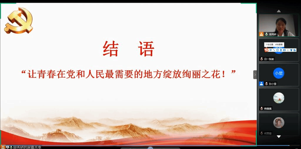 公司党委书记周秀娇以“以先锋为榜样,守初心担使命”为主题,以《人民日报》新媒体视频《英雄回家》开篇,把大家带回到抗击疫情的一个个感人时刻。接着她与大家一起分享公司师生感人的战“疫”故事。在这里,有冒着局势动荡与新冠病毒感染的双重考验、随同中国红十字会专家队赴伊拉克开展抗疫的教师党员艾河旭,有全天穿上厚重防护服支援海关口岸一线的员工党员朱峰钰、林津榛、岑钢……这些身边鲜活的抗疫故事,充分彰显了公司师生党员积极发挥专业特长,在国家最需要的时刻挺身而出和勇于担当的精神和品格。她希望大家要以先锋为榜样,主动增强社会责任感,以坚定的理想信念坚守初心,以不懈的奋斗精神担当使命,以更加优异的成绩为党旗添彩,为夺取抗击疫情的全面胜利贡献青春力量。